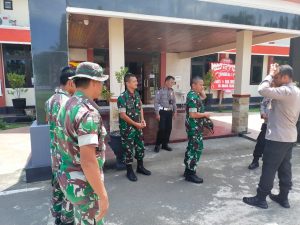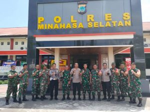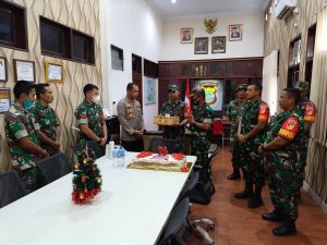 Polres Minsel menerima kunjungan dadakan dari Koramil Amurang yang datang memberi ucapan Hari Bhayangkara ke 76, Jumat pagi 1 Juli 2022.
