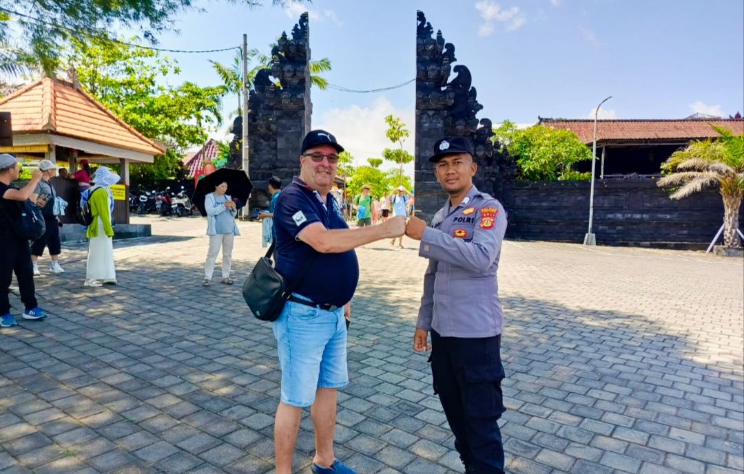 Hari Senin, 20-4-2026 pukul 13.30 s/d 16.30 wita, personil Polsubsektor Tanah Lot Brigadir I Komang Mardimas dan Brigadir I Wayan Kertayasa di backup personil opsnal Polsek Kediri bersinergi dengan satuan pengamanan kawasan DTW Tanah Lot dan pecalang melaksanakan patroli di kawasan baik lokasi parkir, Artshop dan pantai.