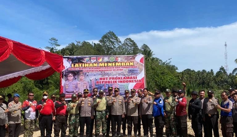 MINSEL, AngkatanMerdeka.Com-  Polres Minahasa Selatan (Minsel) menggelar kegiatan latihan menembak bersama jajaran Forkopimda Kabupaten Minsel, Jumat (11/08/2023), di lapangan tembak