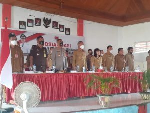 Sosialisasi pemilihan hukum tua serentak Kabupaten Minsel tahun 2022 dilaksanakan di BPU desa Tumpaan Satu, Kecamatan Tumpaan, Senin (11/07/2022).