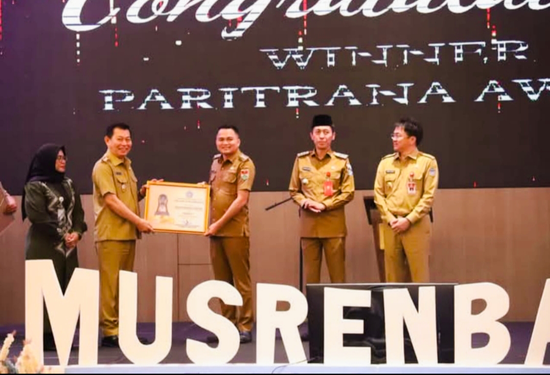 Bupati Ronald Kandoli Raih Penghargaan Terbaik I Paritrana Award 2024.