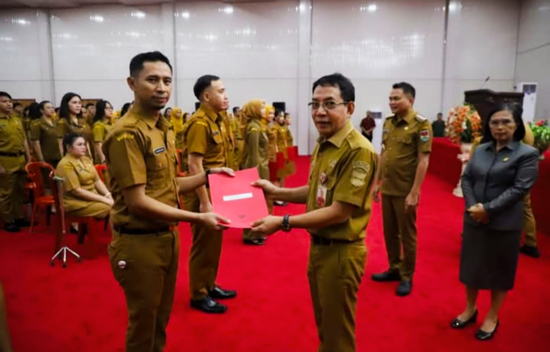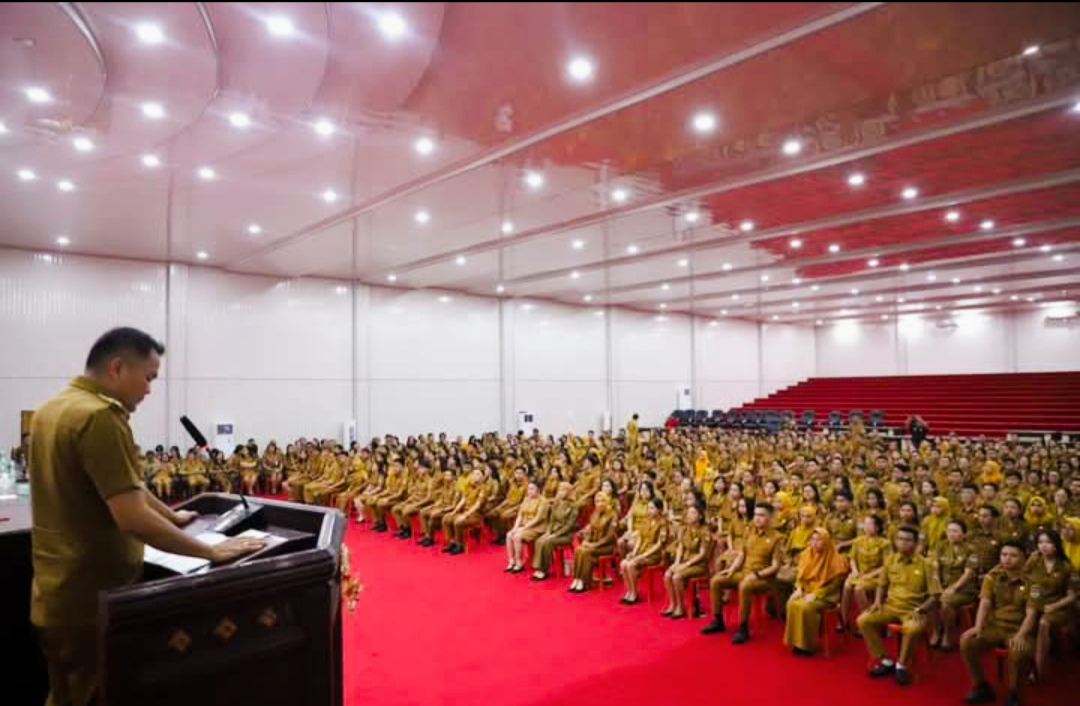 Bupati Minahasa Tenggara (Mitra) Ronald Kandoli, menyerahkan Surat Keputusan ( SK ) Pengangkatan kepada 350 Calon Pegawai Negeri Sipil ( CPNS ) formasi tahun 2024. cara tersebut dilaksanakan diruang rapat DPRD Mitra, Senin ( 23/06/2025 )