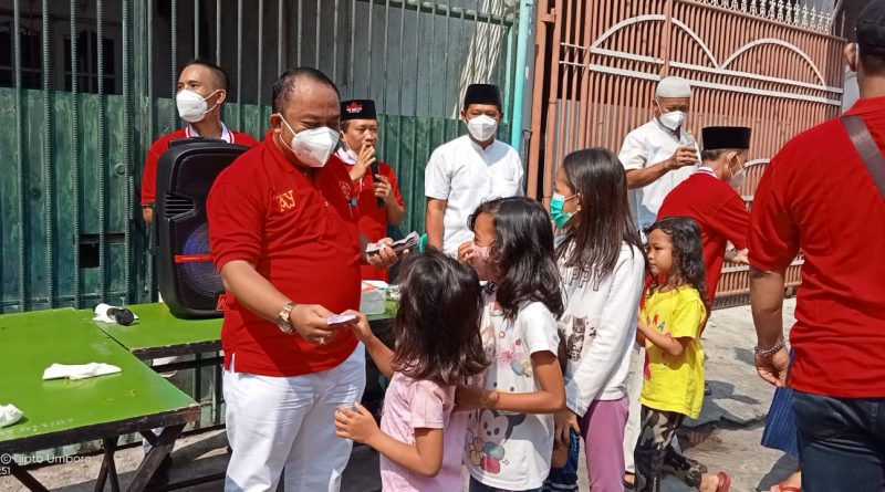 RELAWAN POS-PERA PAC SEMBAR PEDULI, BERBAGI NASI KOTAK PADA PENGGUNA JALAN TIPAR CILINCING.