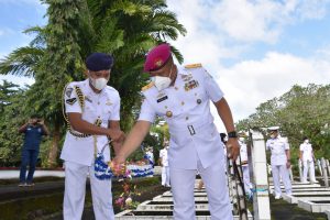 Komandan Pangkalan Utama TNI AL (Danlantamal) VIII Manado Brigjen TNI (Mar) I Wayan Ariwijaya S.E., CFrA., memimpin ziarah dan tabur bunga di Taman Makam Pahlawan (TMP) Kairagi, Manado. Jumat (14/1).