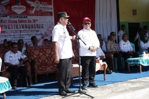Wakil Bupati Bolaang Mongondow Utara Drs. Hi. Amin Lasena, MAP bertindak selaku pembina dalam apel kerja Pemerintah Daerah di Kecamatan Sangkub, Kabupaten Bolmut, provinsi Sulut.