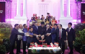 Di sela-sela acara dan dengan disaksikan para Dubes ASEAN, Dubes Lutfi Rauf melakukan prosesi pemotongan kue berwarna merah putih, sebagai rasa syukur kepada Yang Maha Esa sekaligus menandakan 78 tahun kemerdekaan Indonesia dan Keketuaan ASEAN tahun 2023.