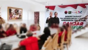 Tim pemenangan salah satu Pasangan Calon (Paslon) Capres – Cawapres Nomor Urut 3 Ganjar-Mahfud di Minahasa Selatan yang dipimpin Frangky Wongkar yang masih menjabat sebagai Bupati Minahasa Selatan melaksanakan aktifitas rapat bersama dengan tim pemenangan di tempat diduga Rumah Dinas (Rudis) Bupati, Selasa (19/12/2023).
