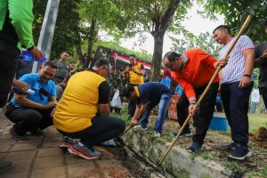 “Ini adalah bentuk kepedulian kita semua terhadap lingkungan dan juga pengikat silaturahmi dengan jajaran Forkopimko Jakarta Utara,” tutur Kapolres Metro Jakarta Utara Kombes Pol Gidion Arif Setyawan saat memimpin apel kegiatan kerja bakti massal di Lapangan Bola Bermis.