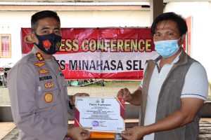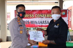 Mengakhiri kegiatan Coffee Morning, Kapolres Minsel menyerahkan Piagam Penghargaan kepada para wartawan media cetak dan online biro Minsel.