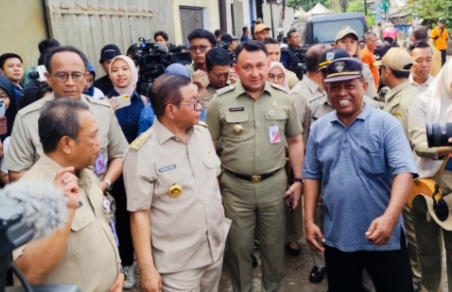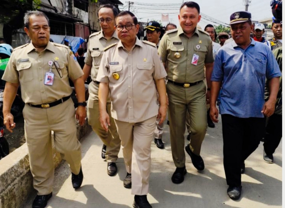 Gubernur DKI Jakarta Pramono Anung didampingi Wali Kota Jakarta Utara (Jakut) Hendra Hidayat, bersama jajaran instansi terkait, meninjau kondisi jalan lingkungan di RW 16, Kelurahan Pejagalan, Kecamatan Penjaringan, Jakarta Utara. Senin (27/10/2025)
