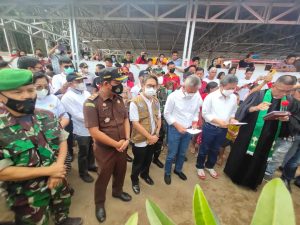 Kapolres Minsel AKBP C. Bambang Harleyanto, SIK; Dandim 1302 Minahasa diwakili Kasdim Mayor Inf. Vino Onibala, S.T.P; Kajari Minsel diwakili Kasi Datun Arilasman Kornelius; Ketua PN Amurang Ariyas Dedy; jajaran SKPD Minsel, serta warga korban bencana alam.