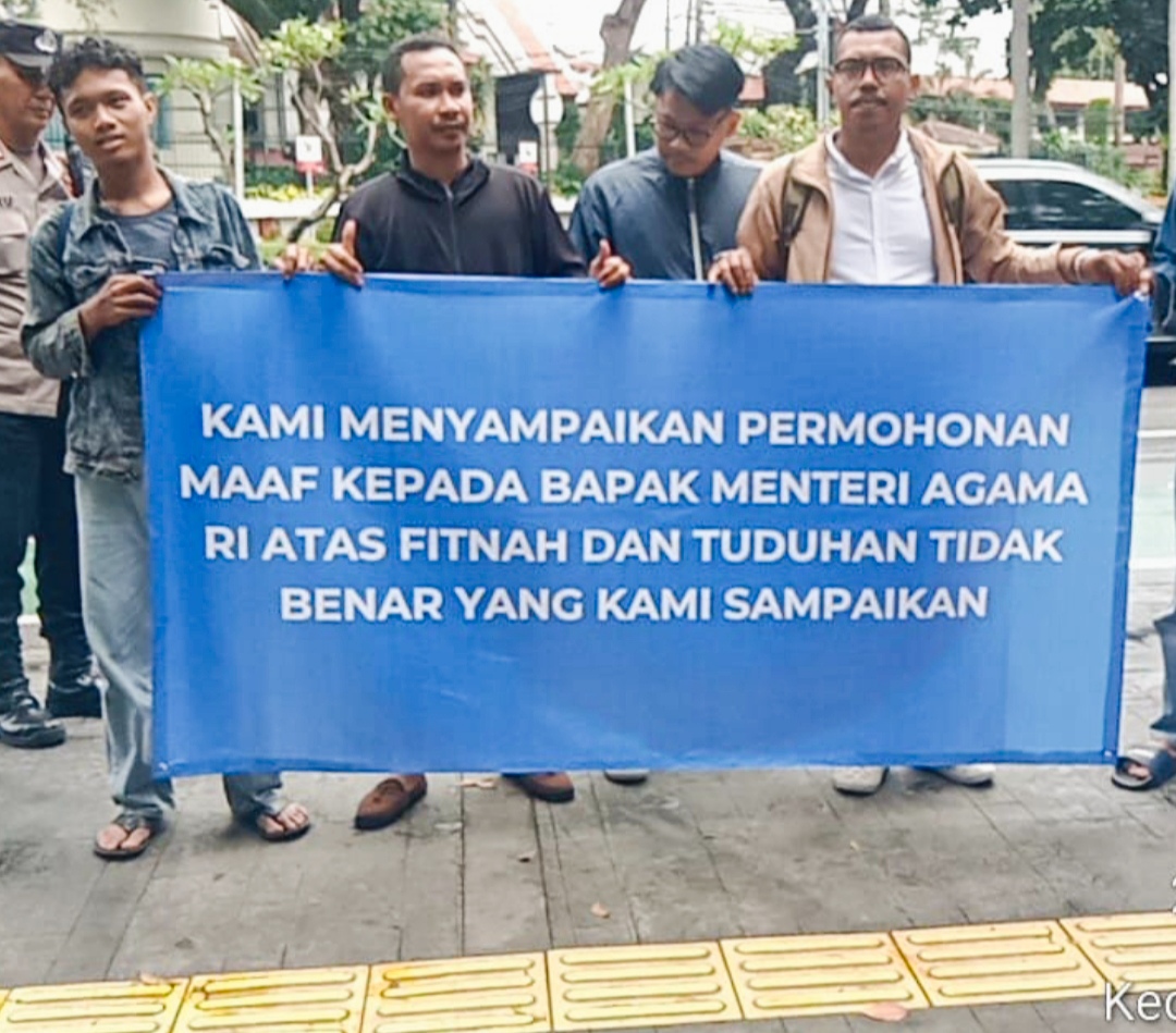 Koordinator aksi yang menggelar demonstrasi di depan kantor Kementerian Agama dengan menyuarakan narasi fitnah kepada Menag Prof Nasaruddin Umar akhirnya meminta maaf.