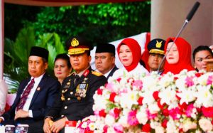 Kapolda Sulawesi Utara Irjen Pol Yudhiawan didampingi Ketua Bhayangkari Sulut, Yunita Yudhiawan menghadiri Upacara Peringatan HUT ke 79 RI, yang digelar Pemerintah Provinsi (Pemprov) Sulawesi Utara (Sulut), di Lapangan Kantor Gubernur Sulut, Sabtu (17/8/2024).