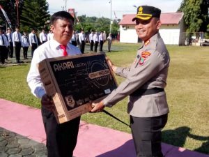 Pada kesempatan apel bulanan ini Kapolres Minsel AKBP Feri R. Sitorus, SIK, MH; memberikan reward kepada para personel berprestasi yang kali ini diterima oleh Kasikum Iptu Steven Pitoy, S.Sos; dan KBO Sat Reskrim Ipda Macky Kambong.
