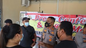 Kapolres Minsel AKBP C. Bambang Harleyanto, SIK; memberikan klarifikasi terkait adanya insiden dalam aksi unjuk rasa (Unras) yang dilakukan oleh Front Peduli Cap Tikus.