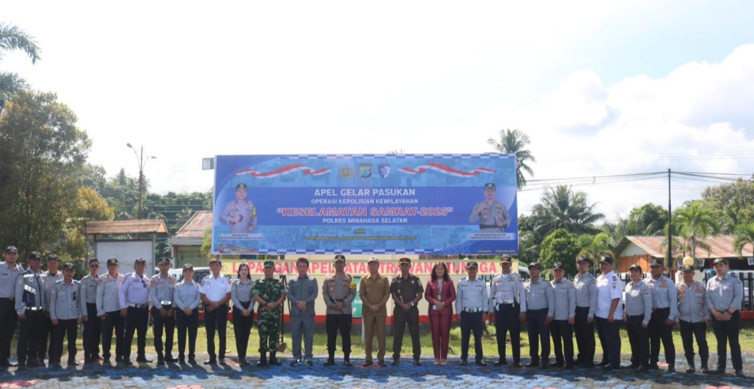 Polres Minahasa Selatan (Minsel) melaksanakan apel gelar pasukan Operasi Kepolisian Keselamatan Samrat 2025 di halaman utama Polres Minsel, Senin (10/02/2025).