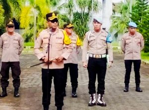 Kapolres Minahasa Selatan (Minsel) AKBP Arianto Salkery, SH, MH; memimpin apel personel pengamanan rapat pleno rekapitulasi hasil perhitungan perolehan suara dan penetapan hasil pemilihan Gubernur dan Wakil Gubernur Propinsi Sulawesi Utara (Sulut) serta Bupati dan Wakil Bupati Kabupaten Minsel, Pilkada serentak tahun 2024.