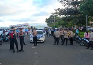 Kapolres Minahasa Selatan (Minsel) AKBP Feri R. Sitorus, SIK, MH; selaku Kaopsres Operasi Mantap Brata 2024 memimpin kegiatan pengamanan kampanye peserta Pemilu 2024 yang dilaksanakan di Kawasan Boulevard, Amurang, Sabtu (03/02/2024).