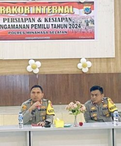 Polres Minahasa Selatan (Minsel) melaksanakan rapat koordinasi internal dalam rangka persiapan dan kesiapan pengamanan Pemilu tahun 2024.