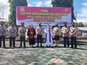 Polres Minahasa Selatan menggelar upacara serah terima jabatan (Sertijab) tiga Kapolsek yang ada di lingkungan jajarannya dan pelantikan Kepala Seksi Hukum (Kasikum), pada Rabu (08/09/2021), dilaksanakan di halaman utama Polres Minsel, dihadiri oleh seluruh pejabat utama, perwira, brigadir dan ASN.