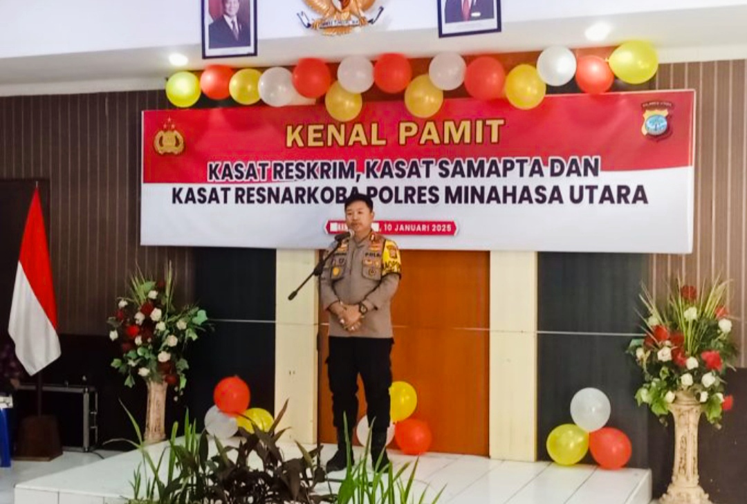 Polres Minahasa Utara mengadakan acara “Kenal Pamit Kasat Reskrim Kasat Samapta dan Kasat Resnarkoba Polres Minahasa Utara” bertempat di Aula Polres Minahasa Utara. Jumat, 10/01/2025.