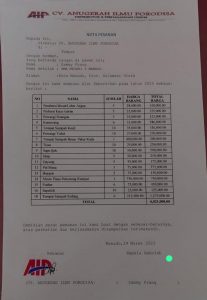 Sementara itu Kepala Sekolah Sami Prang saat ditemui membenarkan pesanan tersebut, namun harga yang terlampir adalah harga yang sudah di tentukan oleh pihak CV Anugerah Ilmu Porodisa, awalnya Kepsek mempertanyakan harga tersebut karena menurutnya harga tersebut sudah tidak wajar.