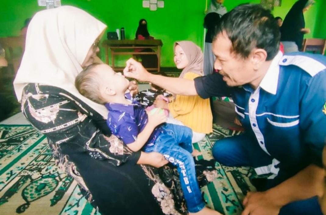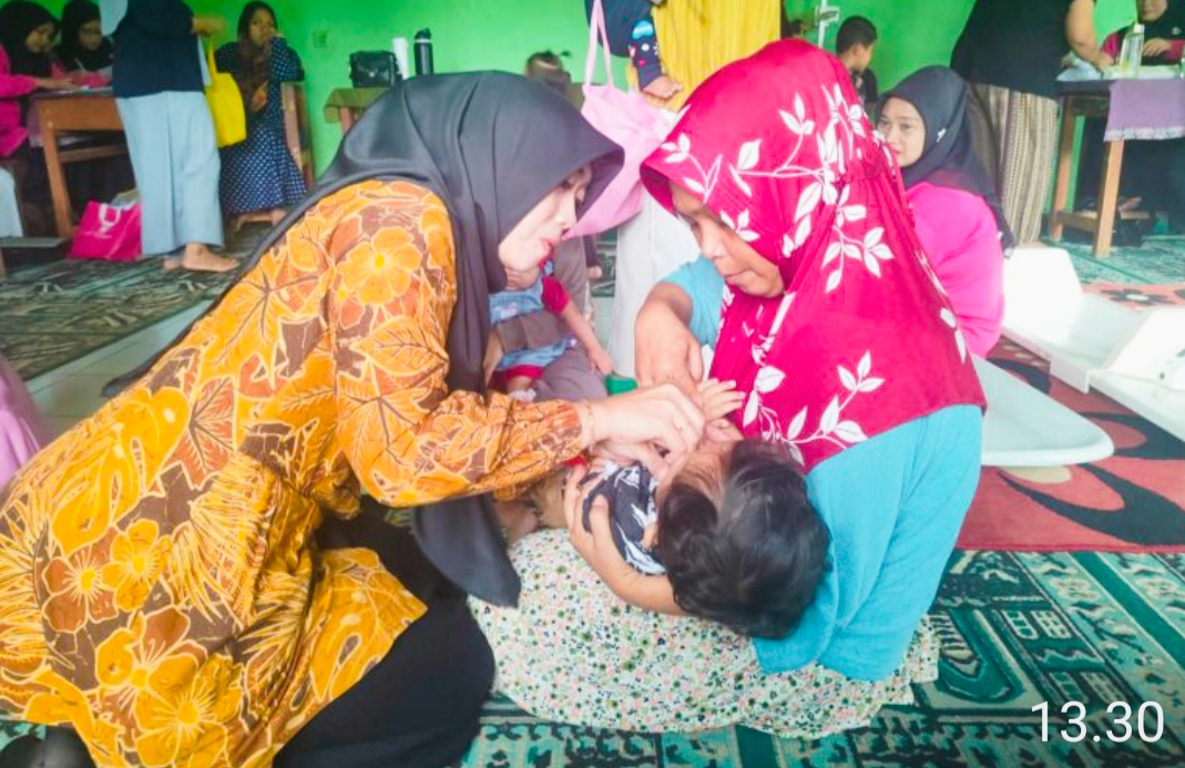 Ketua PKK Desa Kebon Pedes Pantau Langsung Pemberian Vitamin A dan Obat Cscing Kepada Anak- Anak