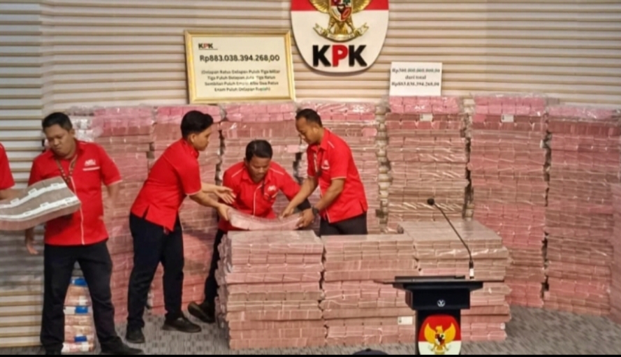KPK telah memamerkan tumpukan uang senilai Rp300 miliar di ruang konferensi pers, Gedung Merah Putih, Kuningan, Jakarta Selatan. Kamis, (20/11/2025).