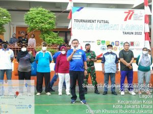 Dalam rangka menyambut dan memeriahkan HUT RI Ke 77, Lurah Lagoa, Suratno Widodo, menyelenggarakan turnamen Futsal usia 12 tahun dalam wilayah Kelurahan Lagoa, Kecamatan Koja Jakarta Utara, memperebutkan Piala Lurah Lagoa yang digelar di SDN Menteng Lagoa, dan dibuka oleh Camat Koja H. Ade Himawan, Sabtu 13-8-2022.