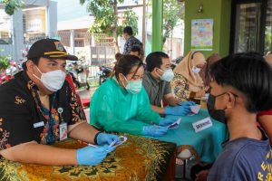 Jakarta, AngkatanMerdeka.com –Melihat antusias warga yang ingin divaksinasi semakin meningkat, Lurah Semper Barat, Benhard Sihotang turun langsung untuk membantu pelaksanaan vaksinasi COVID-19 bagi warga RW 04 di RPTRA Pesona Tipar, Kelurahan Semper Barat, Kecamatan Cilincing, Jakarta Utara. Benhard langsung melayani warga dengan mengambil bagian dalam pengecekan tensi dan skrining kesehatan, Kamis (29/7).