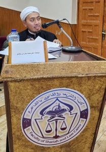 Dengan antusias tinggi Pada 27 Januari 2024, sidang berlangsung selama dua setengah jam. Di hadapan Promotor Prof. Dr. Abdul Aziz Atho’ Guru Besar Fiqih Jurusan Syariah dan Perundang-undangan (Qanun) di Fakultas Studi Islam dan Arab (Ex. Wakil Dekan Jurusan Syariah dan Qanun, Universitas Al Azhar), DR. Abul Khoir Nasy’at Ahmad Guru Besar Fiqih di Fakultas Studi Islam dan Arab, Universitas Al Azhar Mesir. Dengan Penguji Eksternal, Prof. Dr. Farahat Abdul ‘Athi, Guru Besar Fiqih Jurusan Syariah dan Qanun, Universitas Al Azhar (Ex. Dekan Fakultas Syariah dan Qanun, Universitas Al Azhar, serta Anggota Pengurus Lembaga Fatwa Universitas Al Azhar, Prof. DR. Abdul Mutholib Himdan, Guru Besar Fiqih Fakultas Dirasah Islamiyah Banat Sadat (Ex. Dekan).