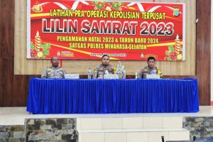 Latpra Ops Lilin Samrat 2023 dilaksanakan di Graha Tatag Trawang Tungga Polres Minsel dipimpin langsung Kapolres Minsel AKBP Feri R. Sitorus, SIK, MH selaku Ka Ops Res; didampingi Kabag Ops AKP Verry Liwutang, SH selaku Karendalops dan Kasiwas Ipda Johanes selaku Kawasops.