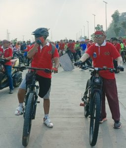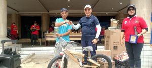 Juga hadir tokoh masyarakat Dr Salman, mengucapkan terima kasih pada pengurus PWI Jakut karena diberi kesempan untuk tampil dipanggung upacara Pemda Jakut, sekaligus memberi hadiah pemenang door ptize berupa 1 unit sepeda BMX pada team gowes Piposs SKU AngkatanMerdeka.com,