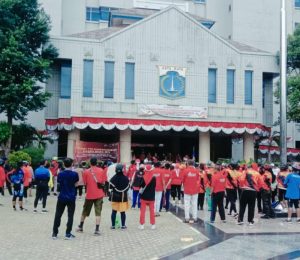 namun Walikota berhalangan hadir karena menghadiri dan melepaskan peserta Gober Fun Bike HUT ke 2 Gobas di Rw 02 Kelurahan Tugu Utara.