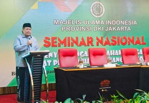 Majelis Ulama Indonesia Provinsi DKI Jakarta lewat Bidang Pengkajian dan Penelitian (Kajiliti) menggelar Seminar Nasional yang bertema “Penyimpangan Pemahaman Agama Akibat Pengaruh Kesenjangan Ekonomi” di Sunlake Hotel, Kamis (8/8/2024).