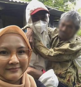 Beliau tinggal sendiri dan sudah 2 hari tidak mendapat asupan makanan, bahkan beliau sedang sakit sehingga saat hendak dibawah keluar rumah harus di gendong.