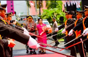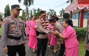 Kapolres Minsel AKBP Arianto Salkery, SH,MH; bersama Ketua Bhayangkari Cabang Minsel Ny. Viska Salkery, SH, M.Kn disambut oleh Wakapolres Kompol Muhammad Fadli, SIK, MH dan Wakil Ketua Bhayangkari Cabang Minsel Ny. Via Fadli.