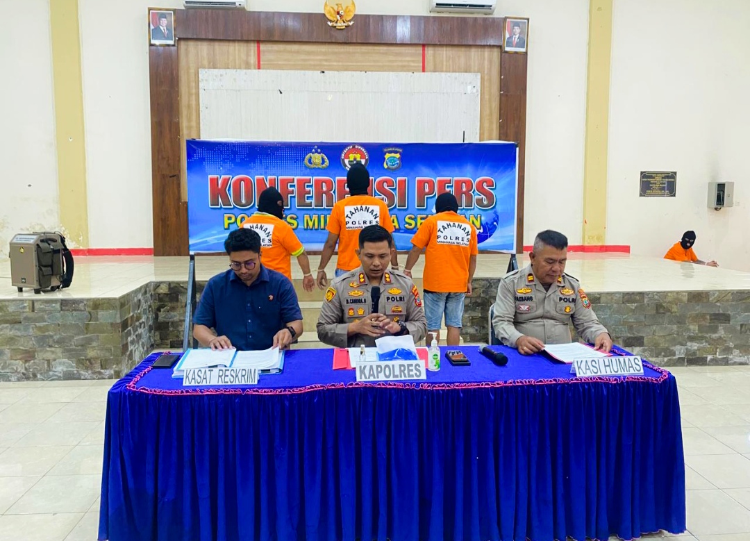 Konferensi pers ini dilaksanakan di Graha Tatag Trawang Tungga Polres Minsel, Kamis (23/1/2025), dihadiri oleh Kapolres Minsel AKBP David Candra Babega, SIK, MH; Kasat Reskrim AKP Ahmad A.A. Pratama, S.Tr.K, SIK; Kasi Humas Iptu Paebang Gama dan wartawan media Biro Minsel