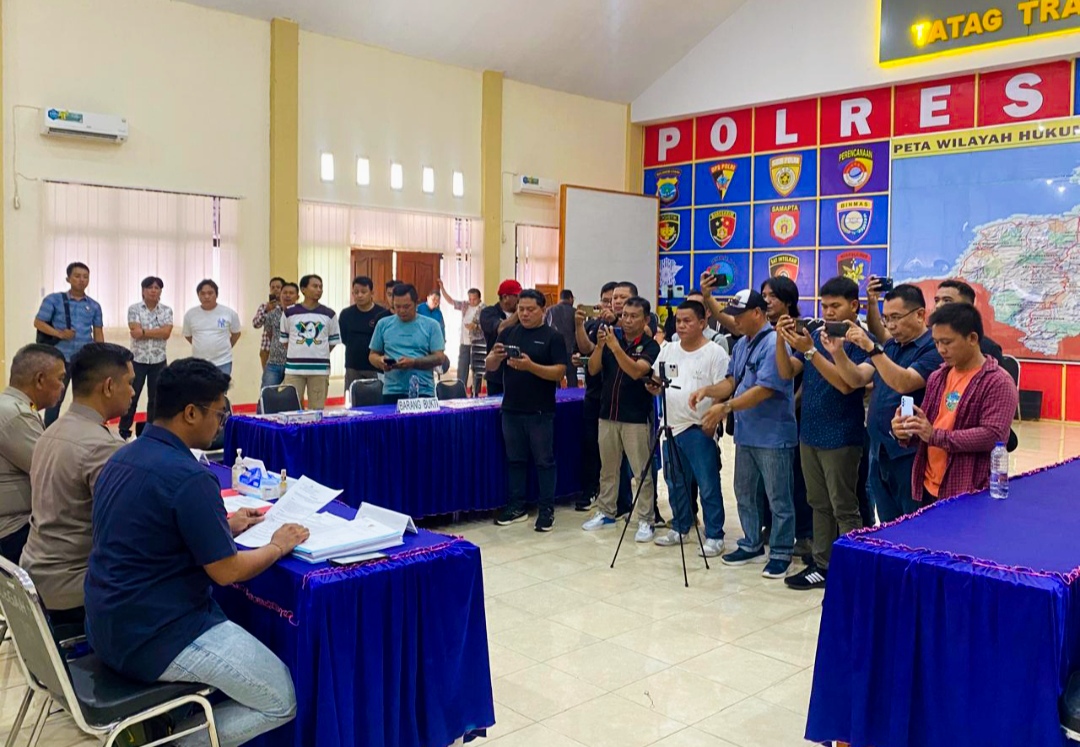 Konferensi pers ini dilaksanakan di Graha Tatag Trawang Tungga Polres Minsel, Kamis (23/1/2025), dihadiri oleh Kapolres Minsel AKBP David Candra Babega, SIK, MH; Kasat Reskrim AKP Ahmad A.A. Pratama, S.Tr.K, SIK; Kasi Humas Iptu Paebang Gama dan wartawan media Biro Minsel