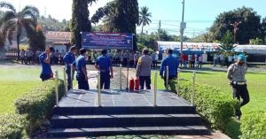 Kebakaran diasumsikan terjadi di Mako Polres Minsel, dibunyikan sirene tanda bahaya, kemudian anggota piket langsung mengamankan aset kantor berupa barang inventaris dinas, berkas-berkas arsip, serta mengevakuasi orang tahanan di titik kumpul yang telah ditentukan.