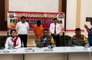 Polres Minahasa Selatan (Minsel) menggelar konferensi pers pengungkapan kasus penikaman anak balita (bawah lima tahun) yang terjadi di Desa Elusan, Kec. Amurang, Kab. Minsel.