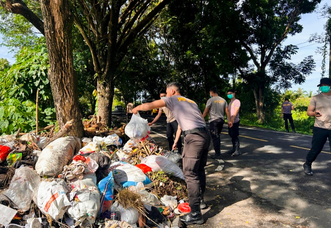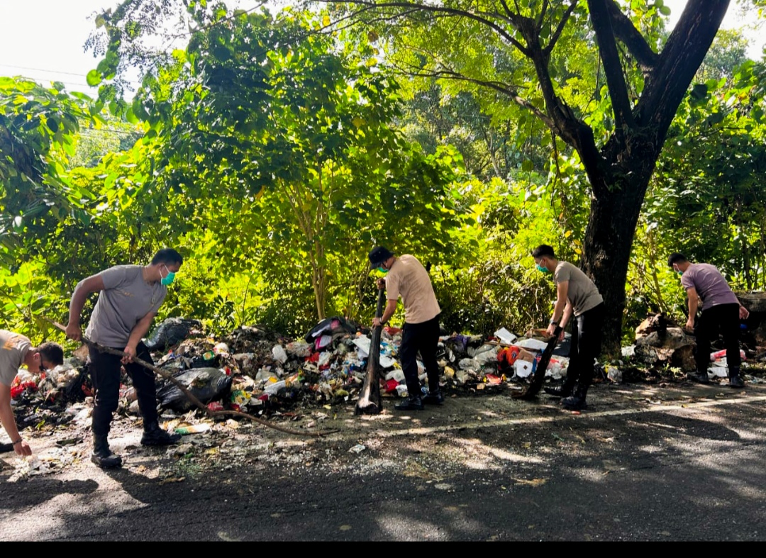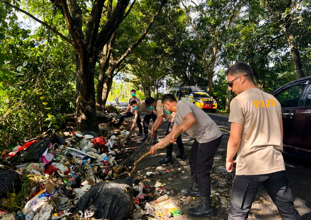 Polres Minsel Peduli Lingkungan, Bersihkan Tumpukan Sampah di Jalan Trans Sulawesi.