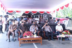 Tiba di Gerai Vaksin Polres Minsel, Kapolda Sulut bersama rombongan disambut Bupati Minsel Franky Donny Wongkar, SH; Kapolres Minsel AKBP C. Bambang Harleyanto, SIK; Kajari Minsel Budi Hartono, SH, MH; Ketua Pengadilan Negeri Amurang Ariyas Dedy, SH; Dandim 1302 Minahasa diwakili Danramil Amurang Kapten Inf. Ramli Hamanja, jajaran pejabat utama Polres Minsel dan sejumlah kepala SKPD Pemkab Minsel.