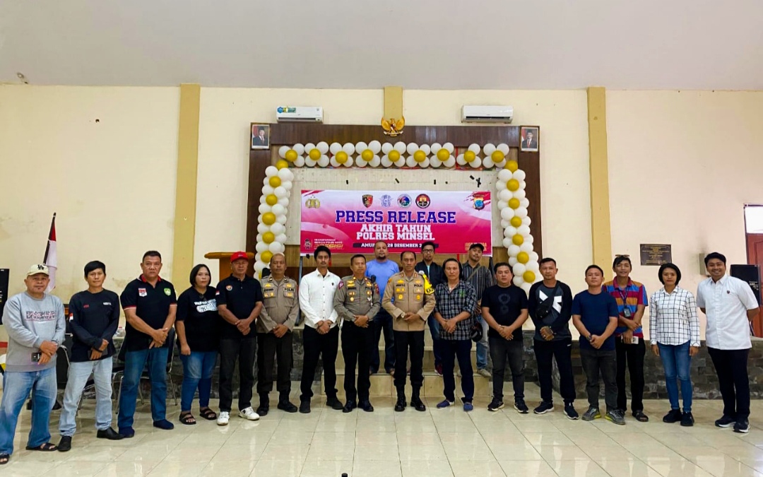 Press release akhir tahun dihadiri oleh Kapolres Minsel AKBP Arianto Salkery, SH, MH; sejumlah pejabat utama Polres Minsel serta para wartawan media cetak/online/TV biro Minsel.