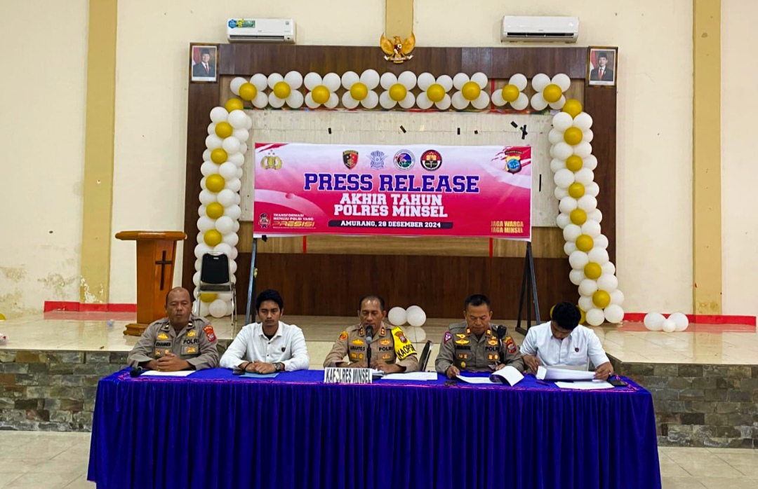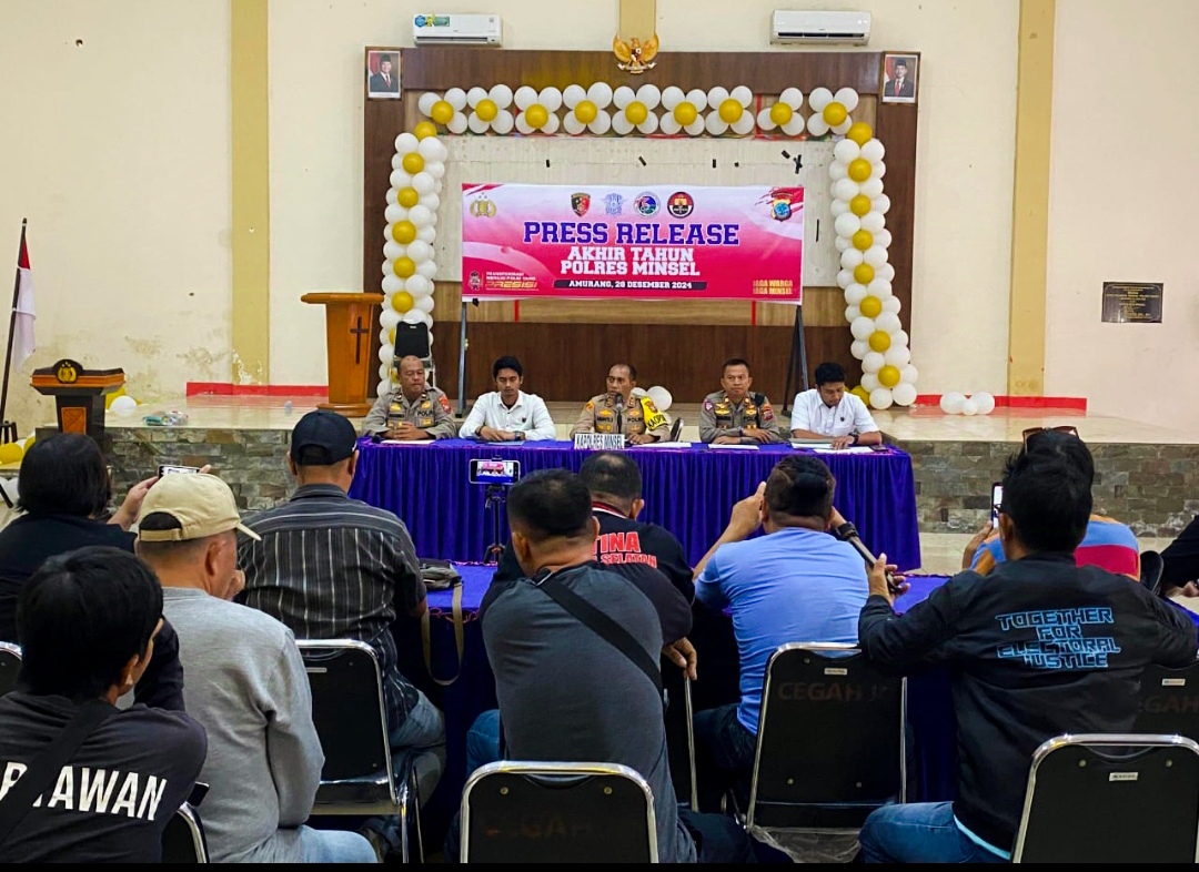 Polres Minahasa Selatan (Minsel) menggelar Press Release Akhir Tahun, Sabtu siang (28/12/2024), di Graha Tatag Trawang Tungga.