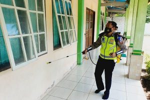 “Bakti sosial ini kami lakukan dalam bentuk penyemprotan disinfektan di masjid, untuk mencegah penyebaran Covid-19,” kata Kasatlantas. Bakti sosial dirangkaikan dengan pemberian bantuan berupa alat-alat kebersihan kepada pengurus masjid.