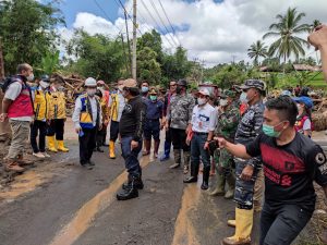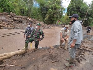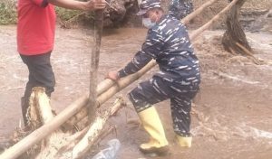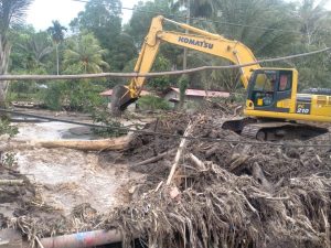 Setelah tiba dilokasi kejadian Posal Atep Oki bersama Kodim 1302/Min, Polres Ratahan, Brimob Polda dan Basarnas Sulut membantu masyarakat dengan melakukan pembersihan akses jalan, menyingkirkan tumpukan kayu yang menutup saluran air di jembatan dengan menggunakan alat berat.