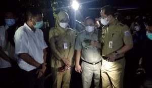 Walikota Kota Administrasi Jakarta Utara, Ali Maulana Hakim meninjau lokasi kebakaran di Lorong L, Kelurahan Koja, Kecamatan Koja, Selasa (16/11) malam.